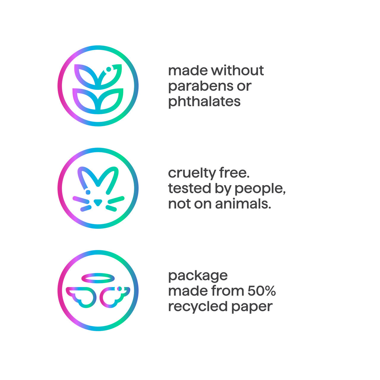 cruelty free. tested by people. not on animals.